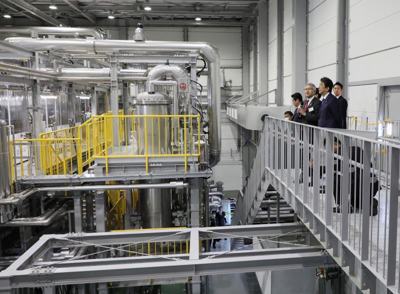 安倍视察研究所的氢气生产线
