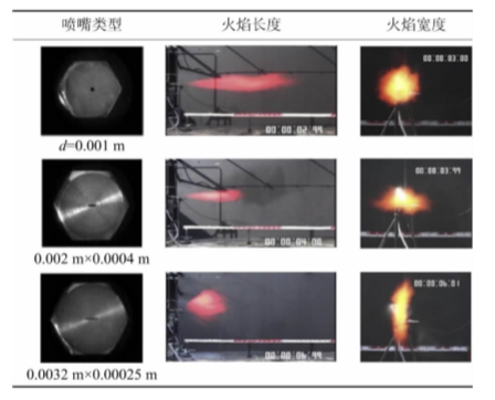 表1不同喷嘴类型下的氢气喷射火试验