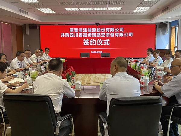 近日,厚普清洁能源股份有限公司并购四川省嘉绮瑞航空装备有限公司举行了签约仪式,厚普股份董事长王季文、厚普股份总经理黄耀辉、嘉绮瑞公司总经理张可等双方经营班子成员代表参加了会议。