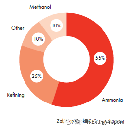 氢是一种高度通用的基础化学品,有两个主要用途:材料应用和能源应用。工业中最重要的材料应用是氨合成,主要用于生产含氮肥料和甲醇合成。此外,氢气是炼油厂原油精炼的副产品,特别是石脑油的催化重整;