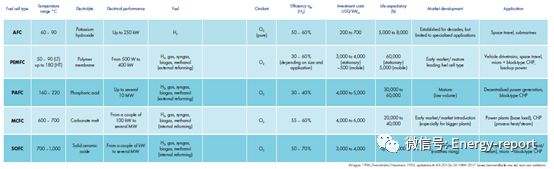 近年来燃料电池已经取得了一些重大技术进步。现在可用的许多不同电池类型在它们使用的电解质(离子导体)和它们的操作温度方面具有很大不同。低温电池允许动态负载响应,而高温电池有利于连续负载,并且对燃料质量的波动更具弹性。此外,在外部或内部重整之后,一些燃料电池类型也可以使用其他含氢燃料(例如天然气或甲醇)。