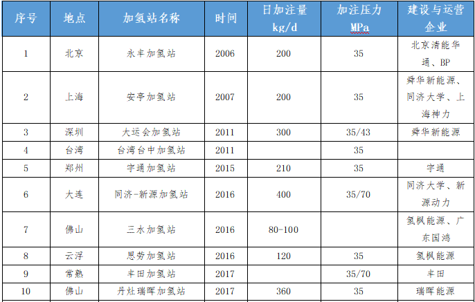 (1)老牌加氢站建设与运营企业:代表企业为氢枫能源和舜华新能源。