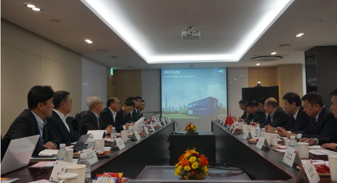 ▲2019年11月,辽宁省委常委,大连市委书记谭作钧一行访问韩国斗山总部深入了解斗山集团产业,沟通合作方向。