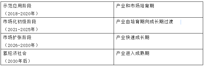 佛山市在2018年11月6日发布的《佛山市氢能源产业发展规划(2018-2030年)》里,也提出了氢能源发展的四阶段论: