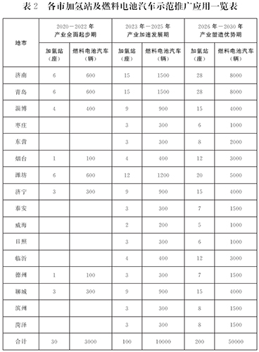 两大集群:形成以潍坊、淄博市为龙头的燃料电池及关键材料产业集群和以聊城、济宁市为龙头的燃料电池整车及氢能制储装备产业集群。其中,潍坊市重点打造世界领先的燃料电池发动机制造基地,淄博市重点打造燃料电池关键材料及核心部件产业基地,聊城市重点打造燃料电池整车研发制造基地,济宁市重点打造氢能制取储运装备产业基地。