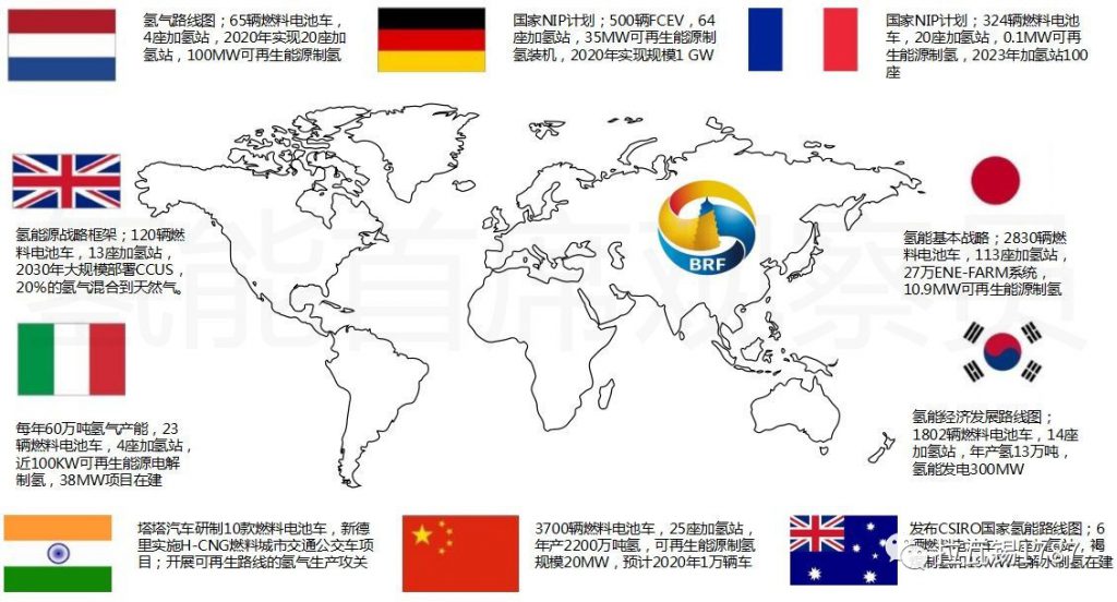 “一带一路”沿线聚集了全球发布氢能战略国家的85%,加氢基础设施的79%,燃料电池装机的83%以及燃料电池车辆的42%。可谓资源上有基础,技术上有积累,应用上有规模。