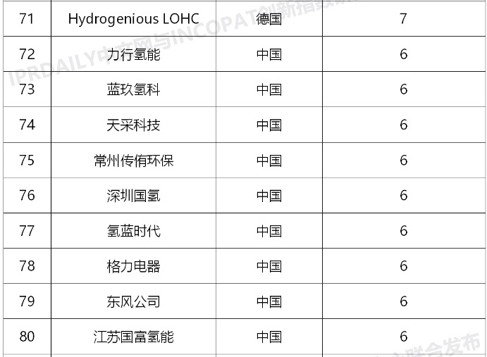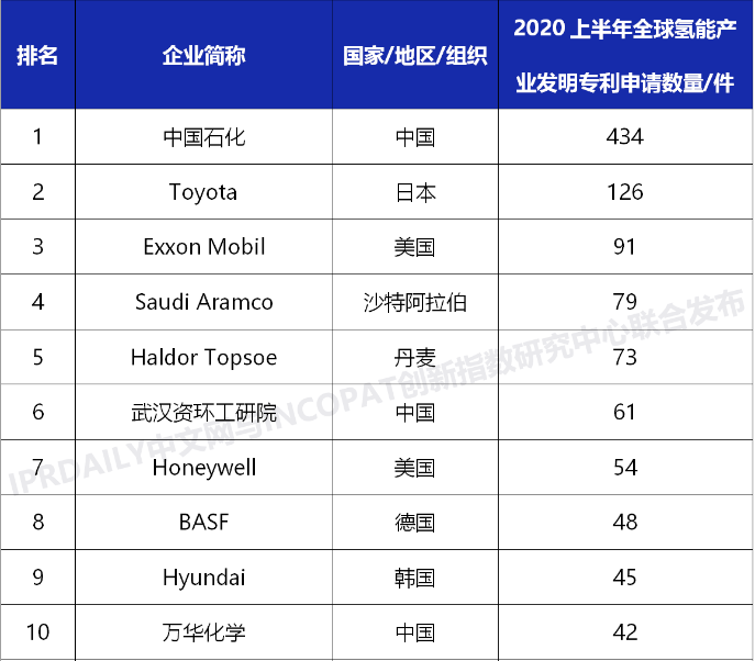 2020上半年全球氢能产业发明专利排行榜(TOP100)