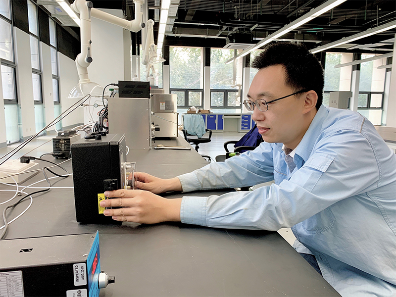 科研人员使用电化学氧测定仪分析氢气中的氧