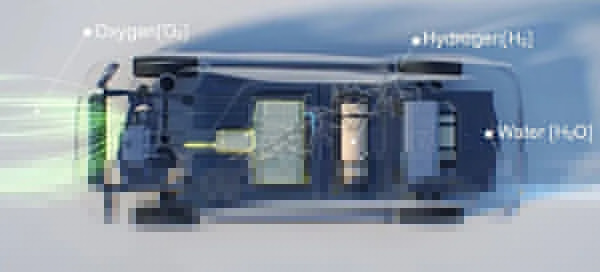 图1显示了氢动力汽车的整体构成。来自储罐的氢与周围环境中的氧在燃料电池中发生反向电解。燃料电池不提供热力燃烧,而是提供电流,它产生的唯一废物是不会发生变化的水。