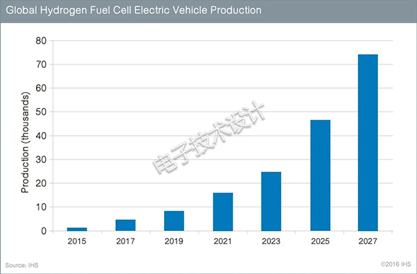 图5:全球氢燃料电池电动车产量(图片来源:IHS)