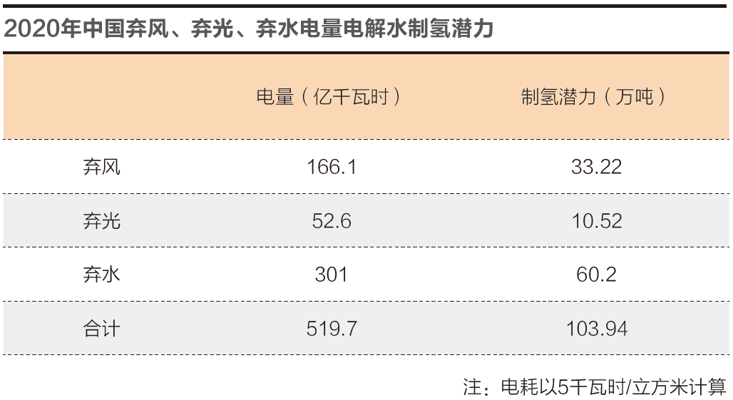 从数据上看,中国可再生能源制氢的潜力无疑是巨大的。2020年全国弃风电量166.1亿千瓦时,弃光电量52.6亿千瓦时,主要河流弃水电量301亿千瓦时。