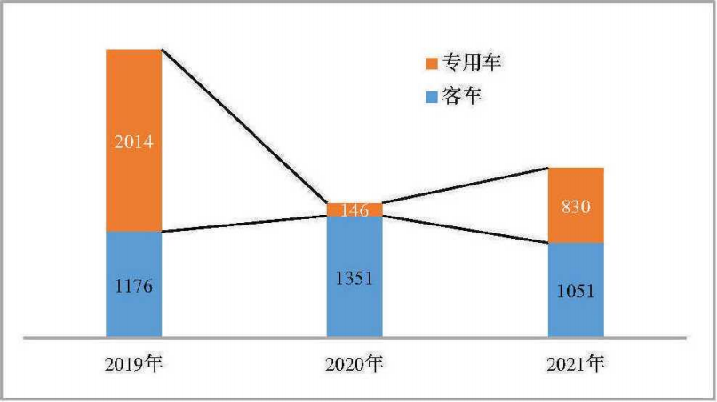 图2 2021年我国燃料电池专用车终端市场细分车型销量(辆)