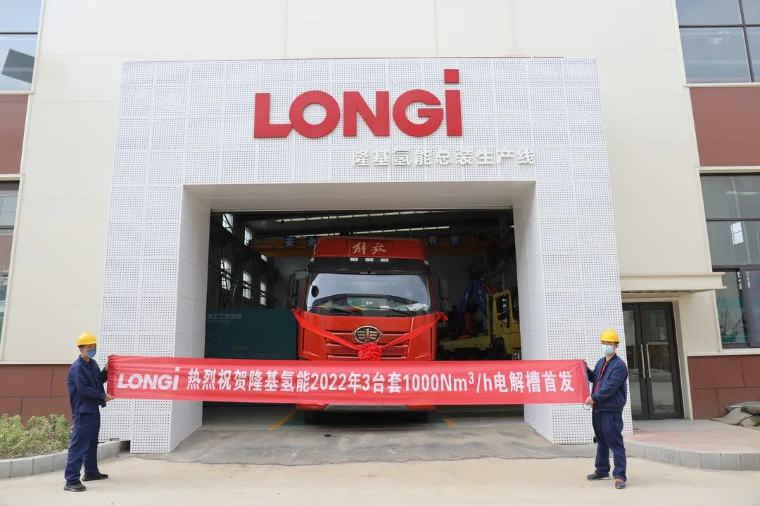 自2021年3月31日成立以来,隆基氢能完成了技术团队搭建、生产工厂建设、第一笔订单签署、第一台产品下线、第一台产品的发货、安装、调试等重要目标。4月12日,隆基氢能又完成了2022年3台套1000Nm3/h的电解水制氢设备顺利首发。