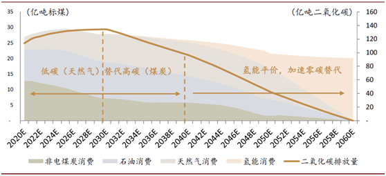 2051E-2060E:全面平价,碳中和目标驱动其余非电领域渗透率全面提升。