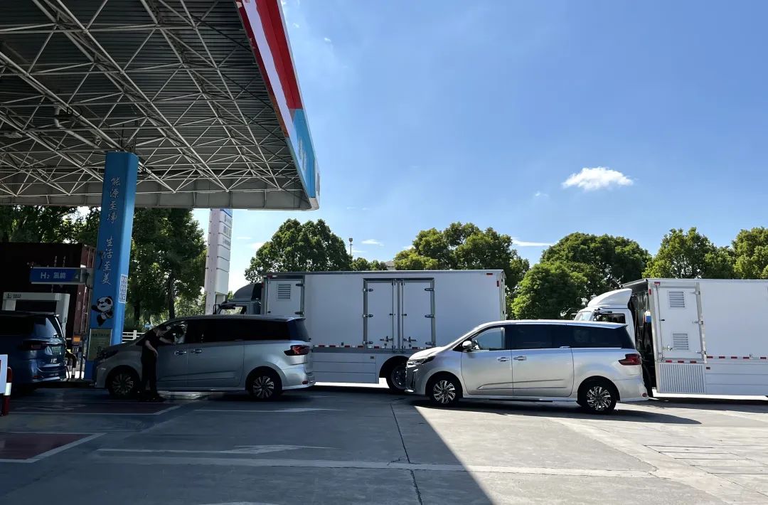 燃料电池车排队加氢。拍摄:彭苏平