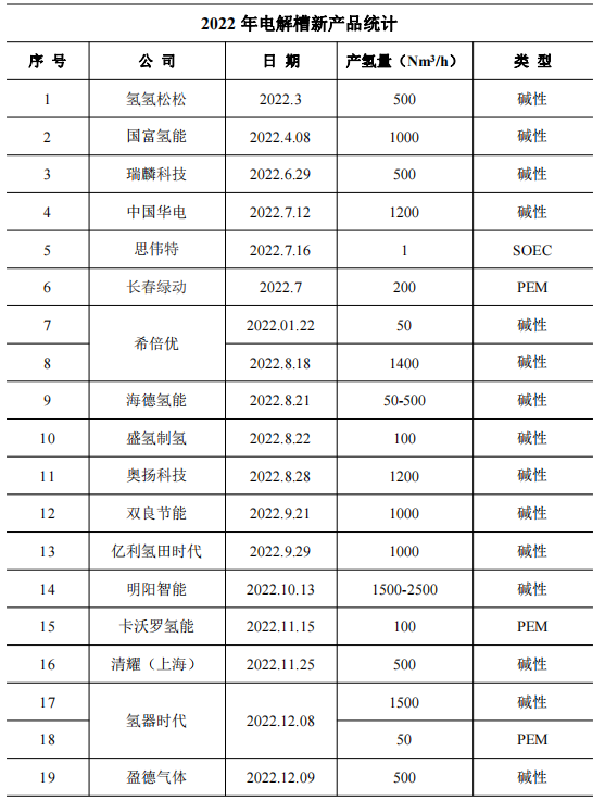 在政策引导、市场发展、行业推动等各种因素的共同作用下,2022年迎来电解槽新产品的密集发布。