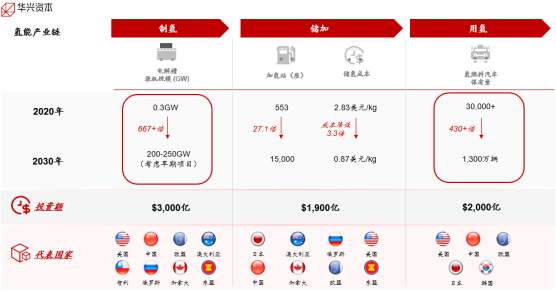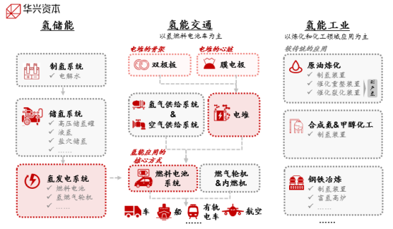 (资料来源:《双碳目标下我国能源电力系统发展前景和关键技术》,《碱性水电解制氢技术综述及展望》,《中国氢能源及燃料电池白皮书》,《中国氢能产业发展报告(2020)》,华兴资本分析)