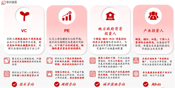 现阶段产业投资人在明确的政策指引下是最为积极布局氢能赛道的投资人,制储运加各环节都会进行多技术路线布局,采用“All-in”策略,其他的各类投资人则各有偏重。