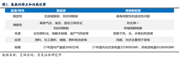 2)绿氢储能具有规模大、时间长、储存与转化形式多样等优势,可解决新能源消纳问题。