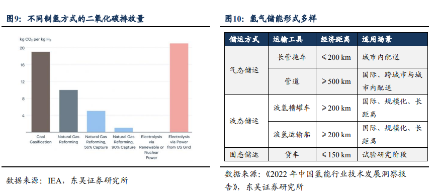 1)绿氢具备“零碳排”的制备优势,减碳空间极大。在制备过程中几乎不排放温室气体,每生产1吨氢气碳排量仅0.03吨;