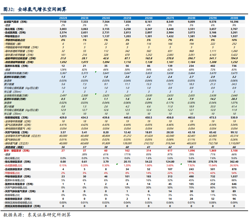 东吴证券测算指出,绿氢替代灰氢大势所趋,2023年国内开始爆发,2025-2027年平价后有望加速。