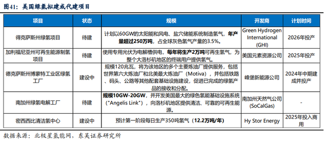 相较欧洲能源公司的激进策略,目前美国绿氢项目规划相对稳健。美国规划的绿氢项目,多集中于加州及德州,目前多处于规划中,按计划将在24-26年逐步投产,预计今年明年大部分项目将确定开建。