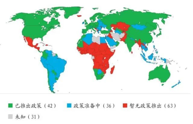 当前,全球都在积极推进绿氢发展,中国、日本、德国、美国等42个国家和地区都已经推出了着重加速布局绿氢的氢能政策,36个国家和地区的氢能政策也正在筹备中。