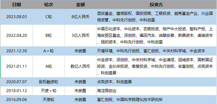 本次融资由诚通混改基金和建信股权共同领投,国投招商、工银投资、越秀产业基金跟投,原股东兴业国信、中科先行创投、中科创星在本轮继续跟投。
