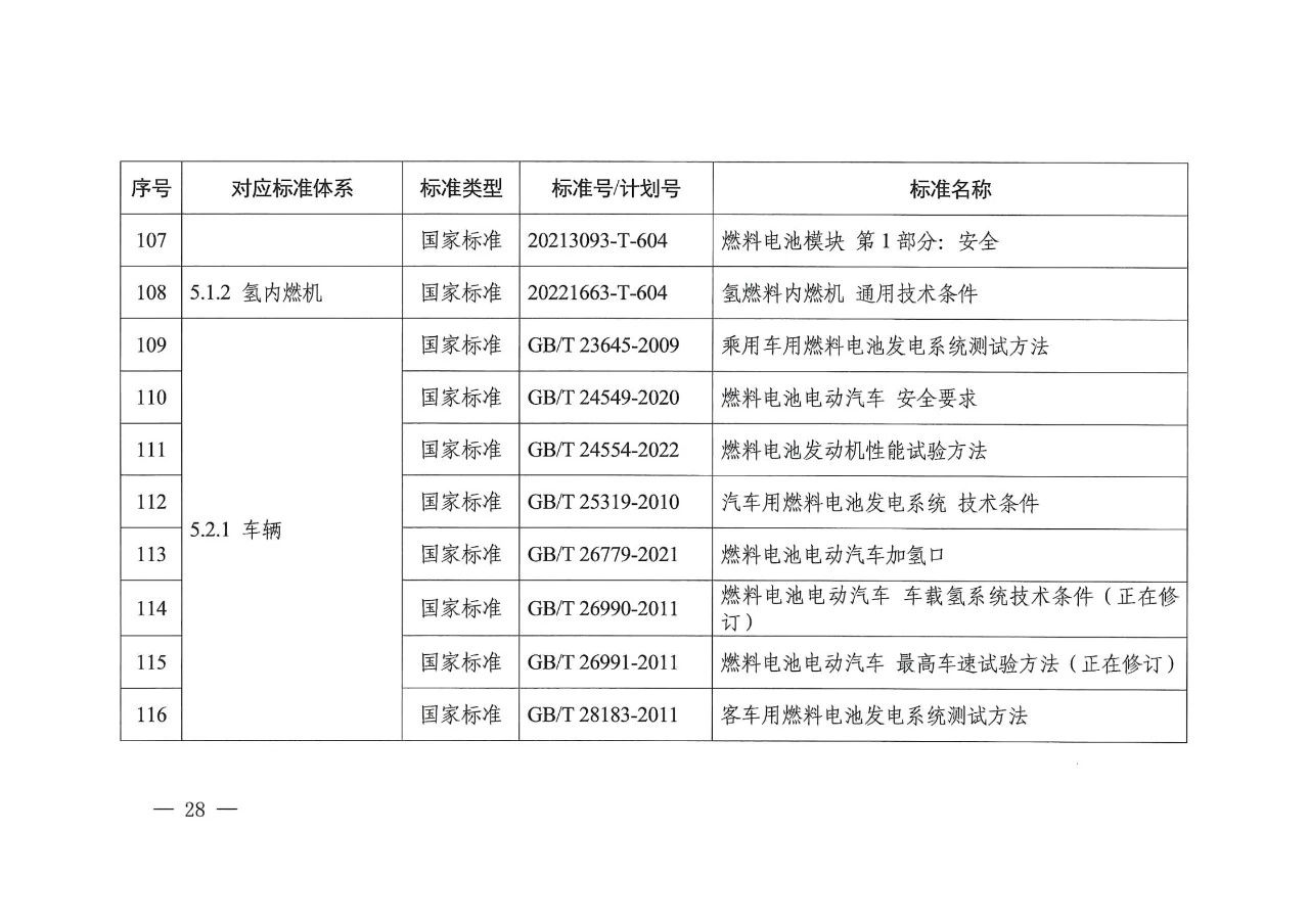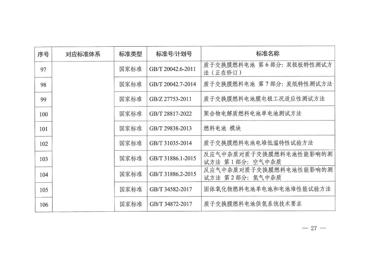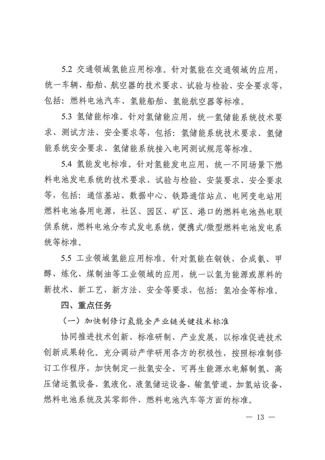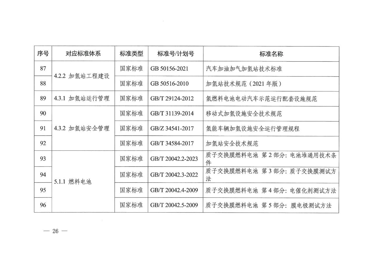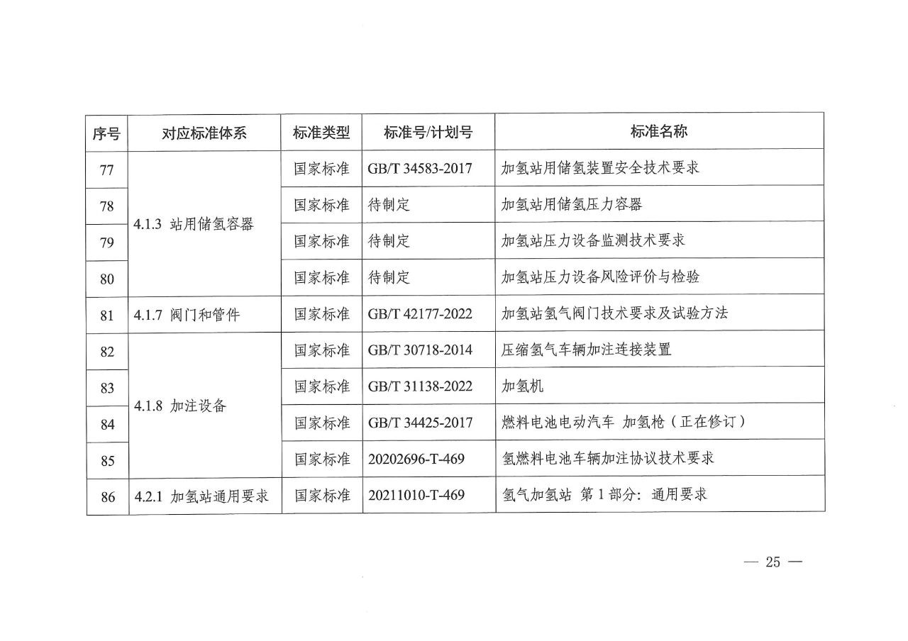 在氢储存和输运方面,主要包括氢气压缩、氢液化、氢气与天然气掺混、固态储氢材料等氢储运基本要求,容器、气瓶、管道等氢储运设备以及氢储存输运系统等方面的标准,推动安全、高效氢储运相关标准的制修订。