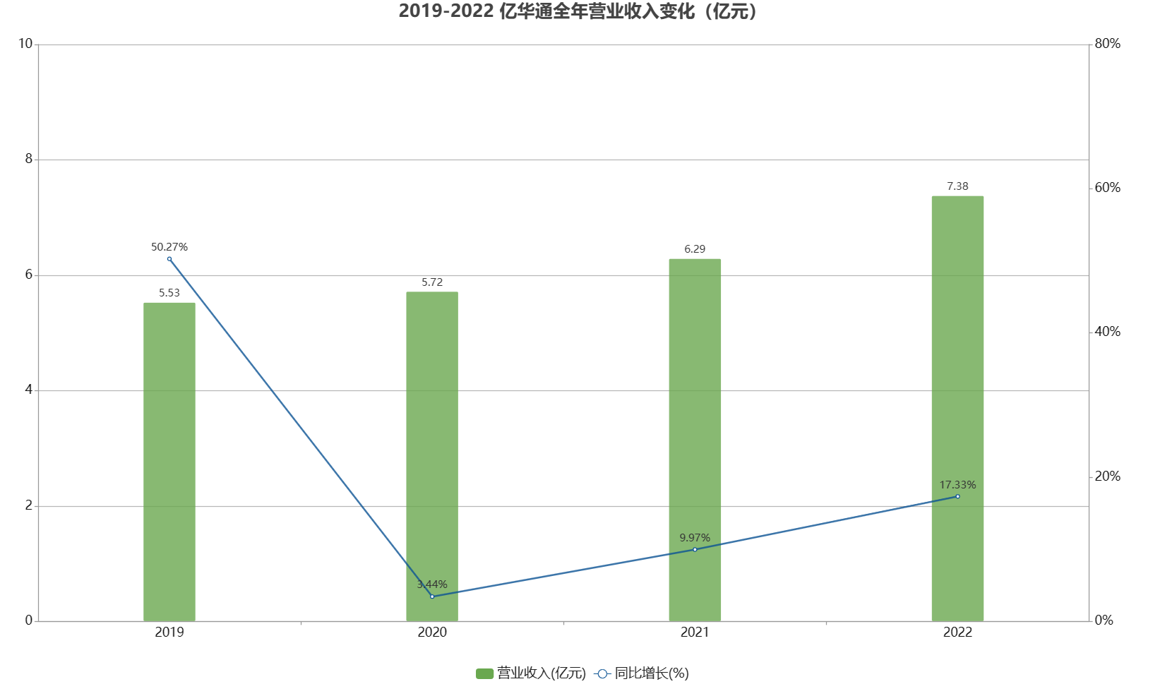 2019年以来亿华通的收入一直在稳步增加。招股书显示,亿华通2019~2022年的收入分别为5.53亿元、5.72亿元、6.29亿元及7.38亿元。但增收仍难掩亏损的问题。