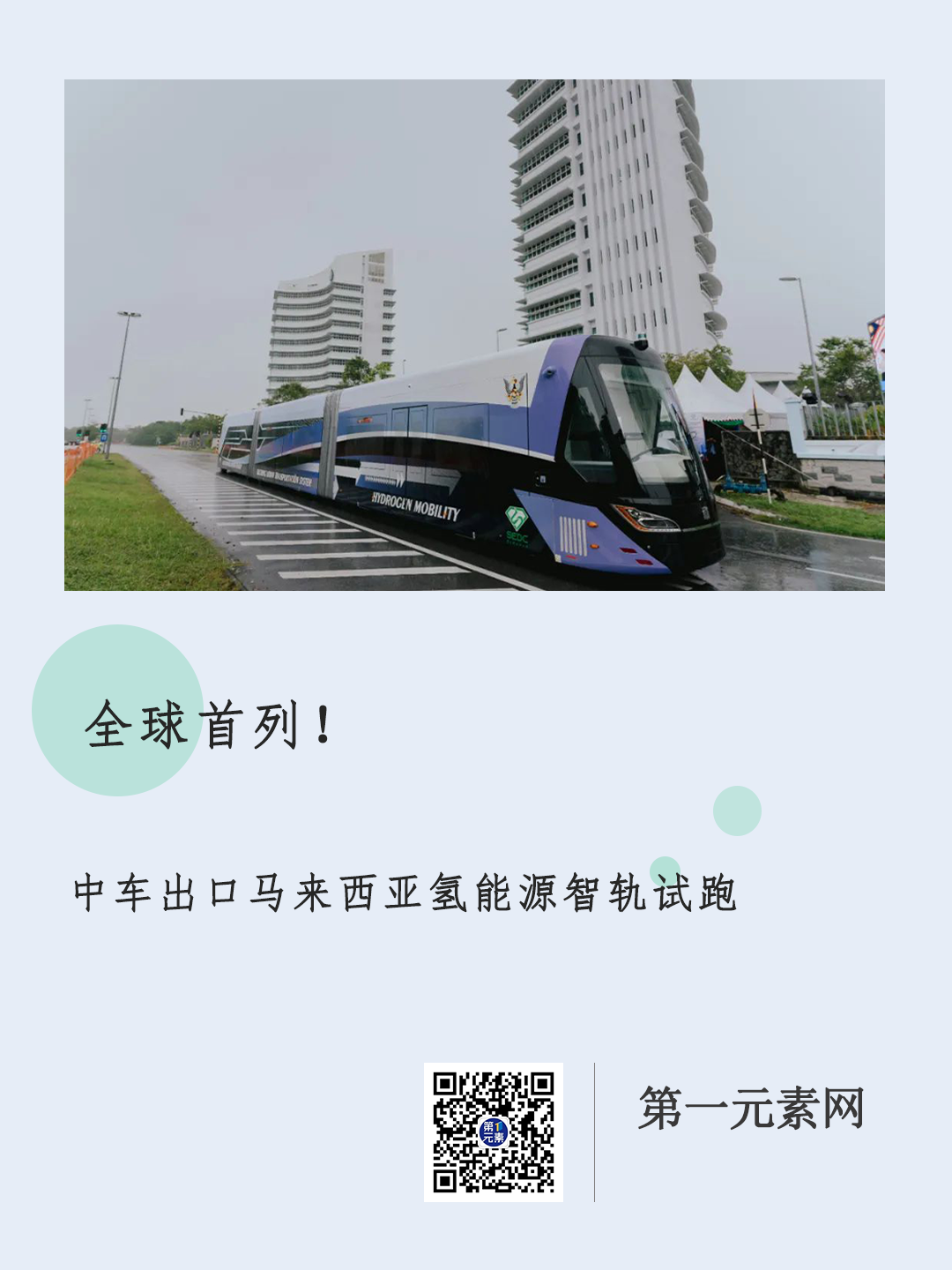 7月14日,由中车株洲所自主研制的全球首辆氢能源智轨电车在湖南株洲顺利装运发车,运往“一带一路”沿线国家马来西亚,这也是首批交付东南亚地区的智轨电车。并于9月6日成功在马来西亚试跑。