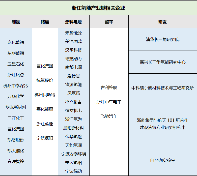 以下是浙江在氢能产业领域相关企业: