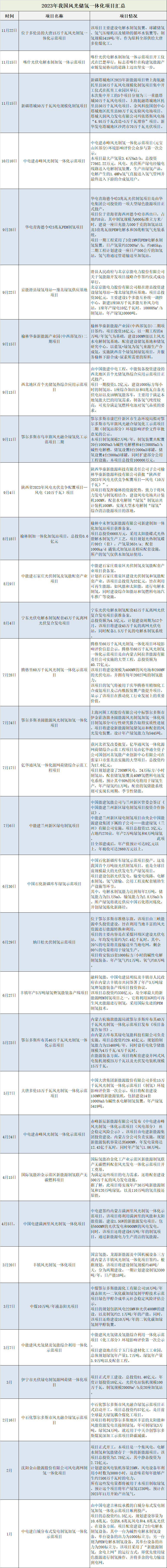 作为新能源综合发展的重要方向,风光储氢一体化项目也在2023取得不小的进展。