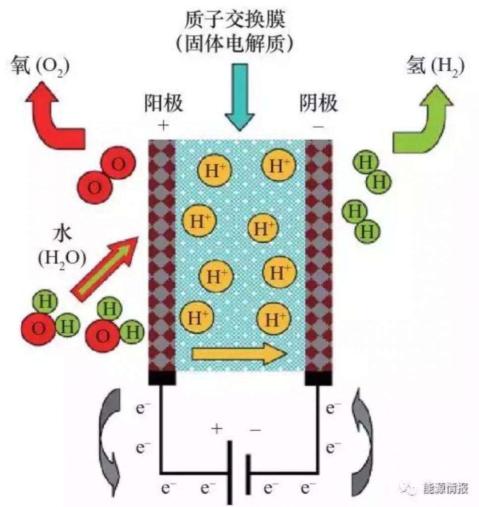 图2质子交换膜水电解制氢原理