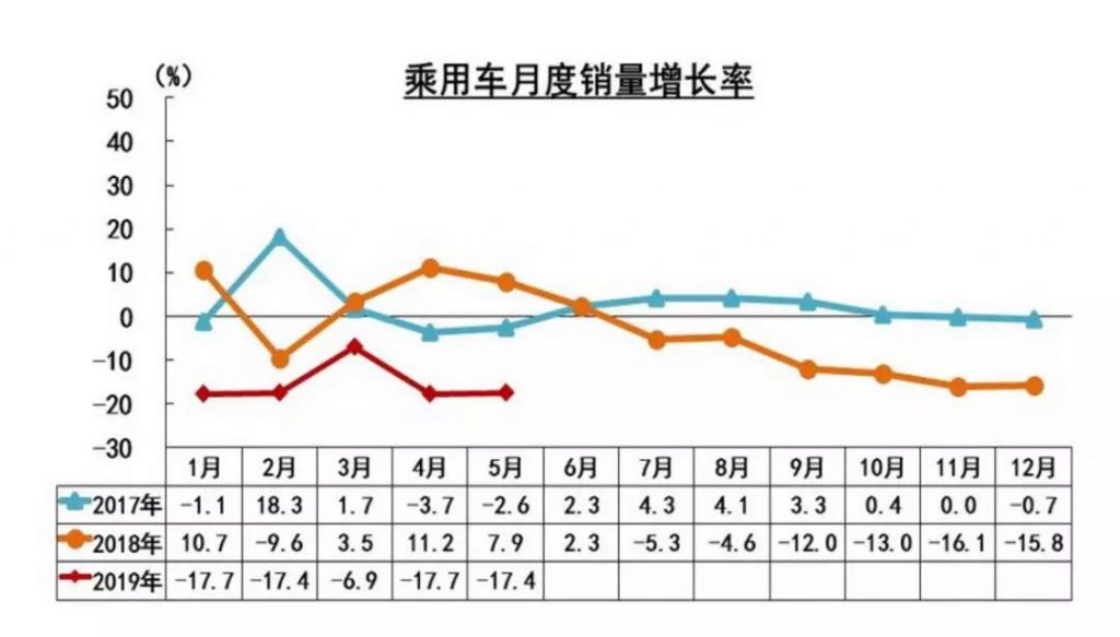 从2018年7月起,乘用车市场已经连续11个月同比增长为负,同时没有好转的迹象,仅在2019年3月出现过短暂的降幅收窄。除了宏观经济因素之外,消费信心下降、国五国六切换导致消费者持币观望也被认为是乘用车市场持续下滑的重要原因。