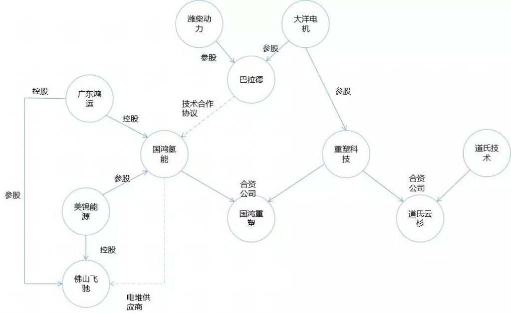在大洋电机参股重塑科技后,通过重塑科技与国鸿氢能的合作关系,与美锦能源-广东鸿运的氢能产业集群建立了一定的联系,再加上道氏技术与重塑科技的合作,一个“美锦能源-国鸿氢能-重塑科技-大洋电机-道氏技术”的企业体系的雏形已经形成。尽管潍柴动力一直游离在外、自称体系,这个“巴拉德体系”已经占据了目前国内大部分的氢能汽车市场,发展前景不可小觑。