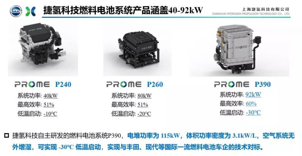 据了解,捷氢科技主要产品有P240、P260、P390。