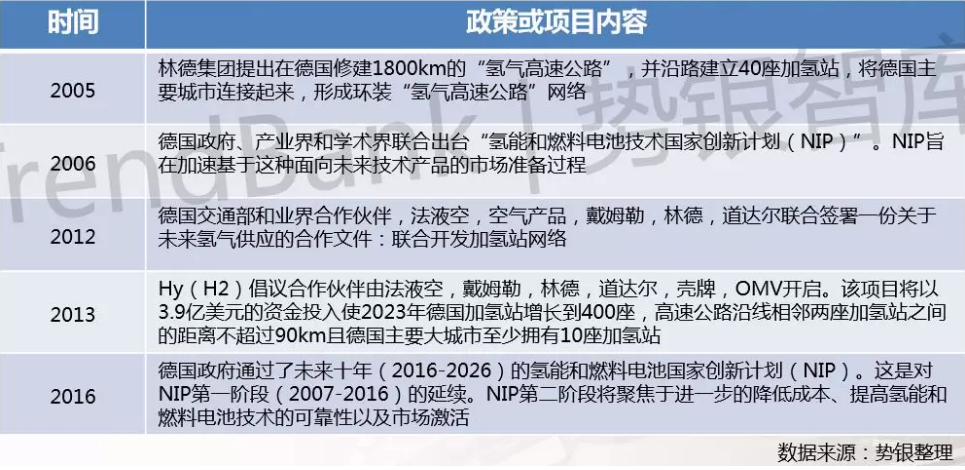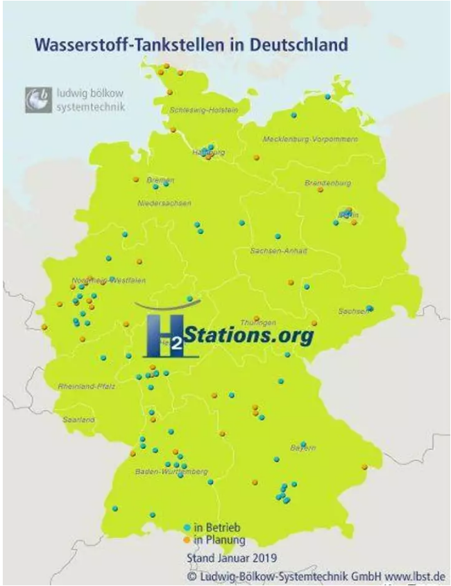 1999年,德国慕尼黑开放了第一个公共加氢站。2018年德国是新增加氢站数量最多国家,达到18座。2019年德国加氢站拥有数量将超过100座。