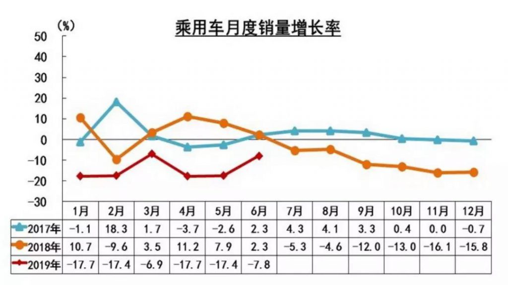 1-6月,乘用车产销分别完成997.8万辆和1012.7万辆,产销量同比分别下降15.8%和14%。销量降幅比1-5月开始收窄。