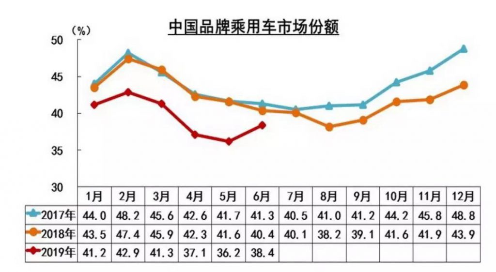 对比5月,自主品牌市场占有率有所回升,但2019年上半年的自主品牌市场占有率仍跌破了40%,进行产业结构调整,提高产品竞争力势在必行。