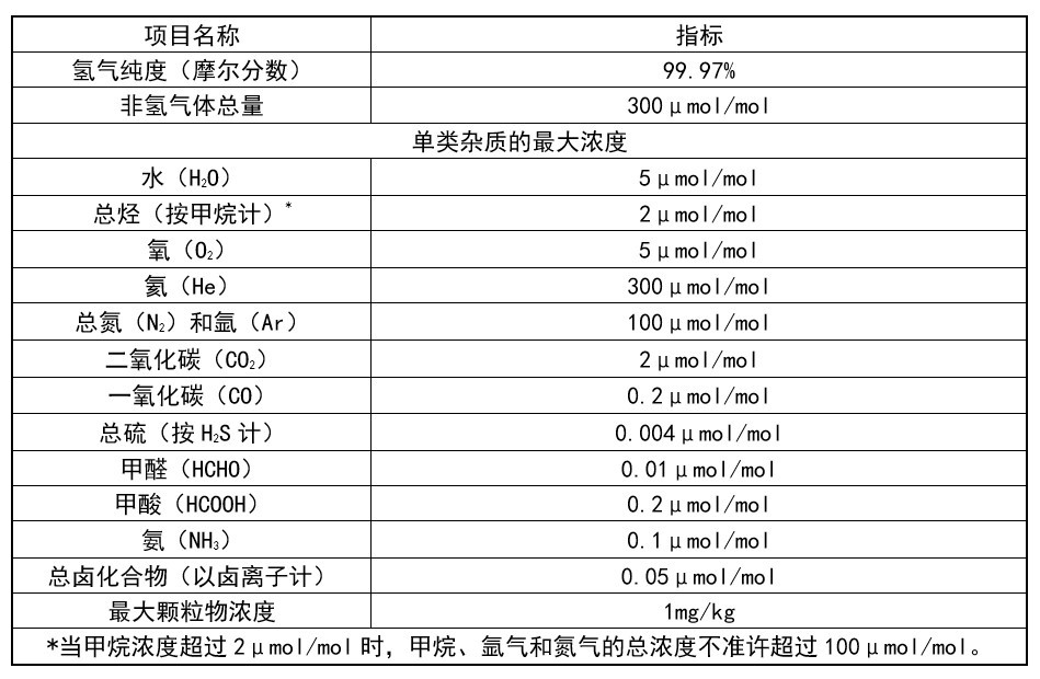 全新的燃料电池用氢国家标准《质子交换膜燃料电池汽车用燃料氢气》于2019年7月1日起开始实施,提出了燃料氢气的概念。