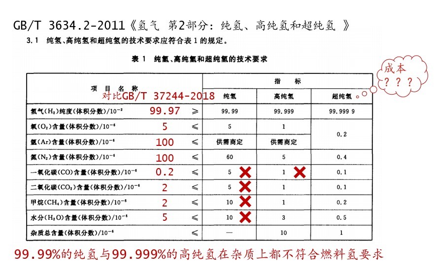 燃料氢不需要那么高的纯度,氢气纯度达到99.97%即可,只需要保证一氧化碳和硫等特殊敏感杂质的含量就可以。